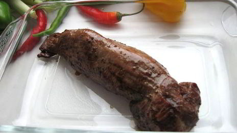 В другой сковороде разогрейте сливочное масло, когда начнёт образовываться пена, выложите на неё вырезку, и обжарьте до золотистой корочки. Затем, в форме для запекания с высокими бортами, выдержите мясо в духовке 20 минут при 200 градусах.